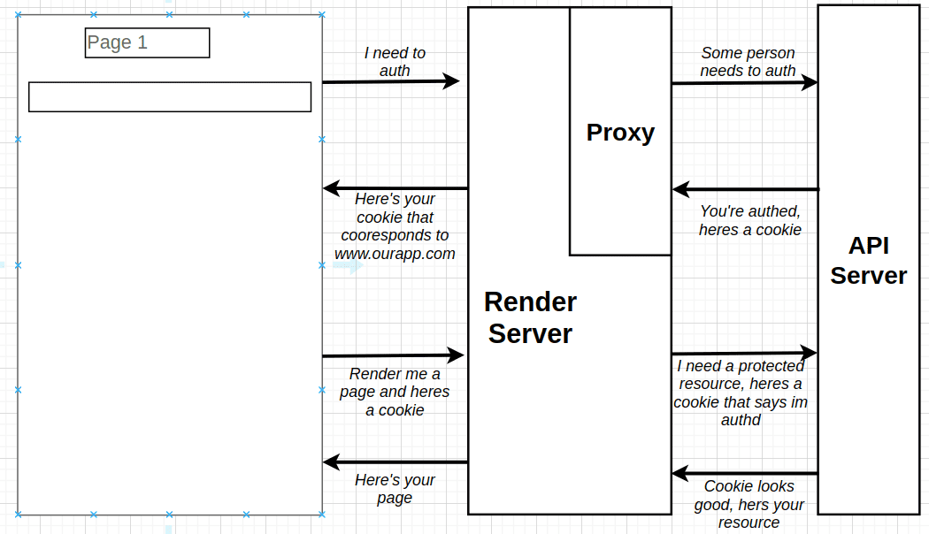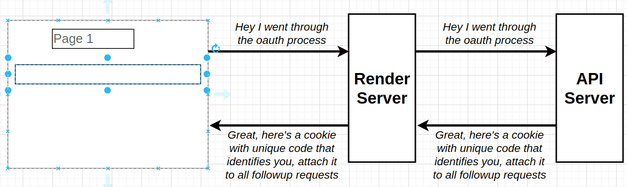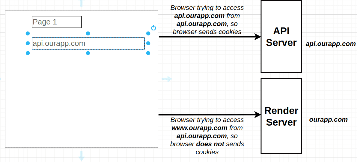 - Our API uses cookies after going through OAuth flow, but the issue with cookies is that cookies are associated with full domain, so requests to sub domains will not include the cookie. So our Render Server will not be able to make requests to API server on behalf of the browser.