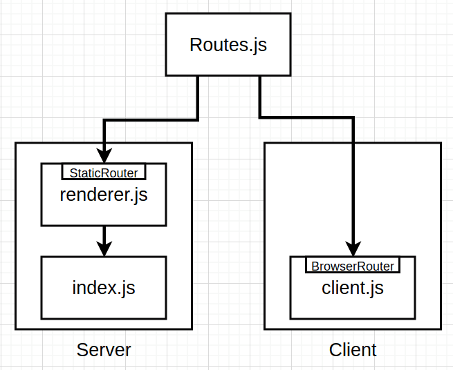Routes.jsfile into:rerenderer.json the server - This usesStaticRouter.client.json the client/browser - This usesBrowserRouter.