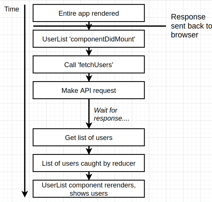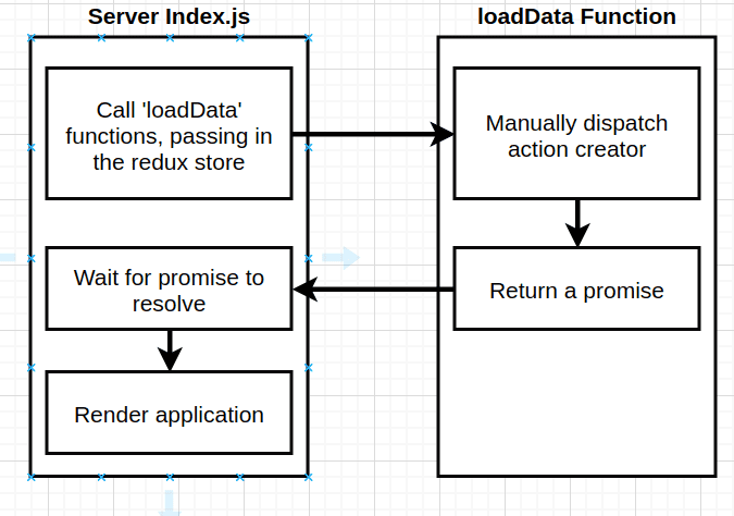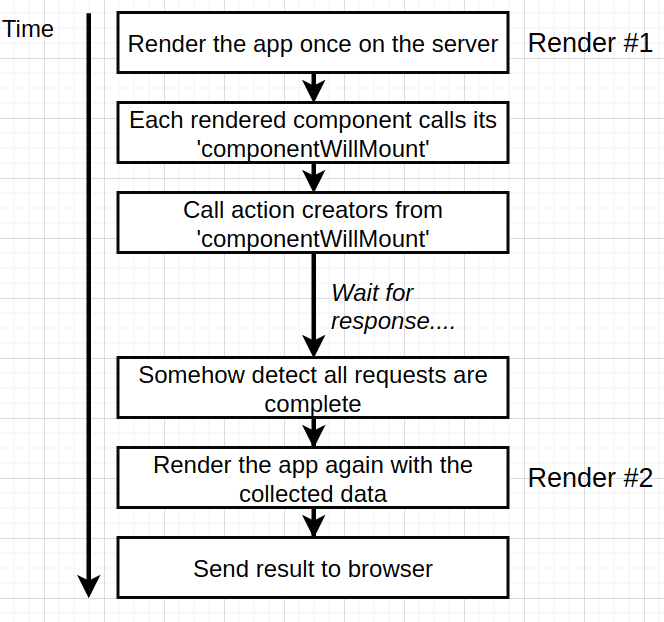 actionCreator, and let it do its thing (fire request, signal it has finished, run reducer, react re-renders when we state change ), but now on the server we need to handle all these steps that were handled for us on the browser. - Challenge 4: this is the easier one :)