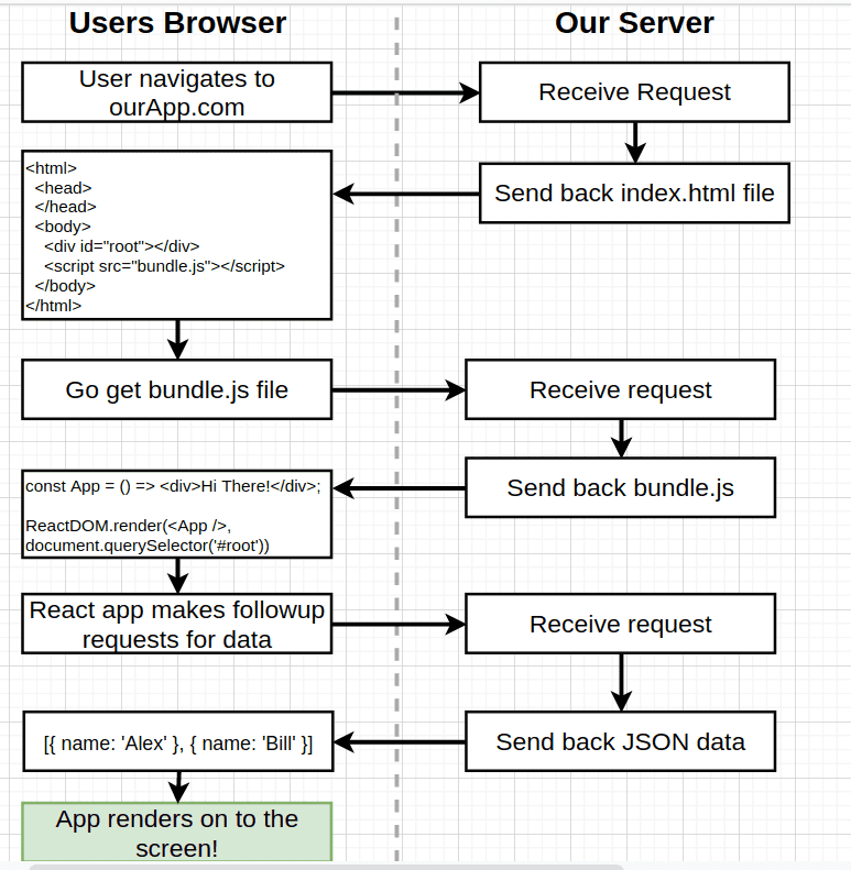 - So to ship the react app to the browser we are going to create a second bundle that only contains the React App code (the first one contains server code + react app).