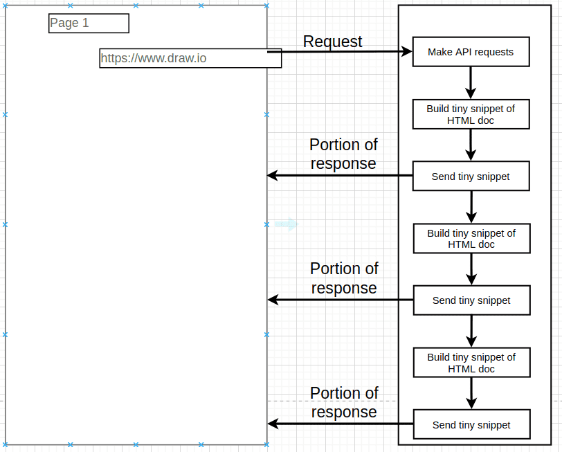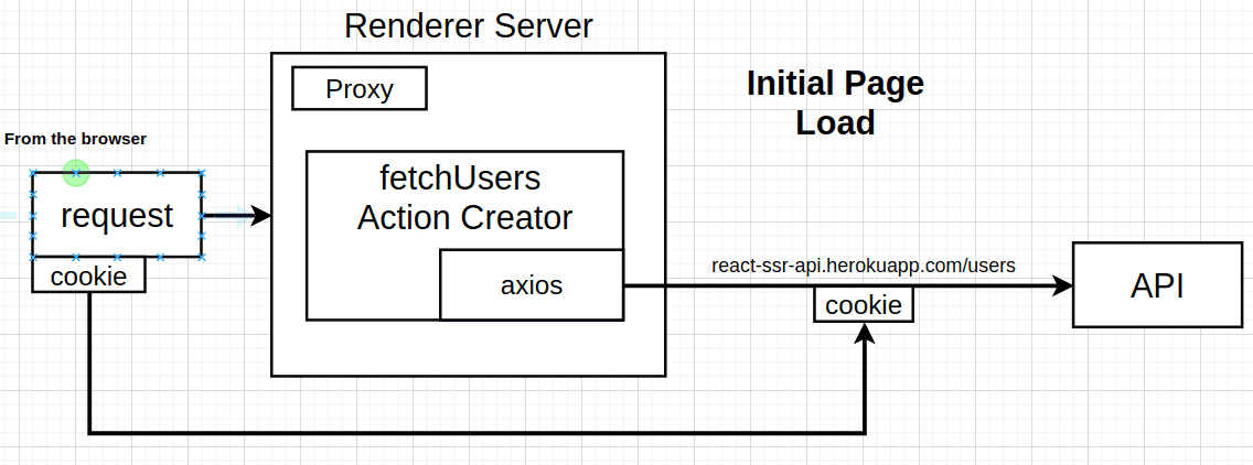 Note that the initial page loading does not require the proxy (render server will make the request on behalf of the browser.)