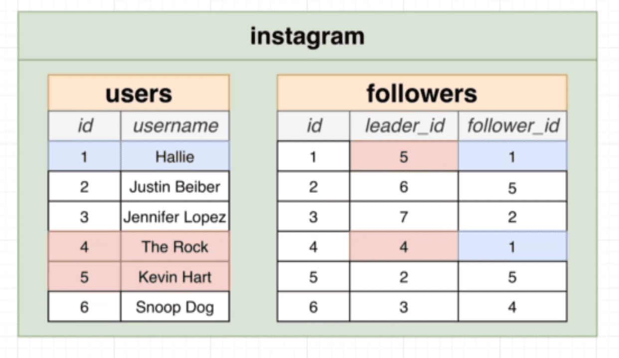 - Produces values by merging together rows from different related tables.