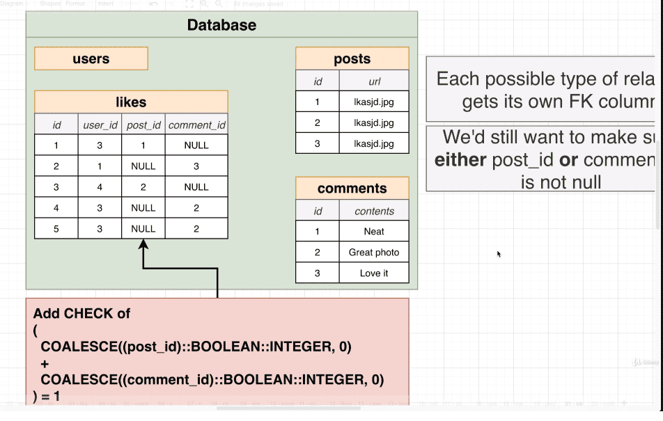 LEFT JOIN comments ON comments.id = likes.comment_id;