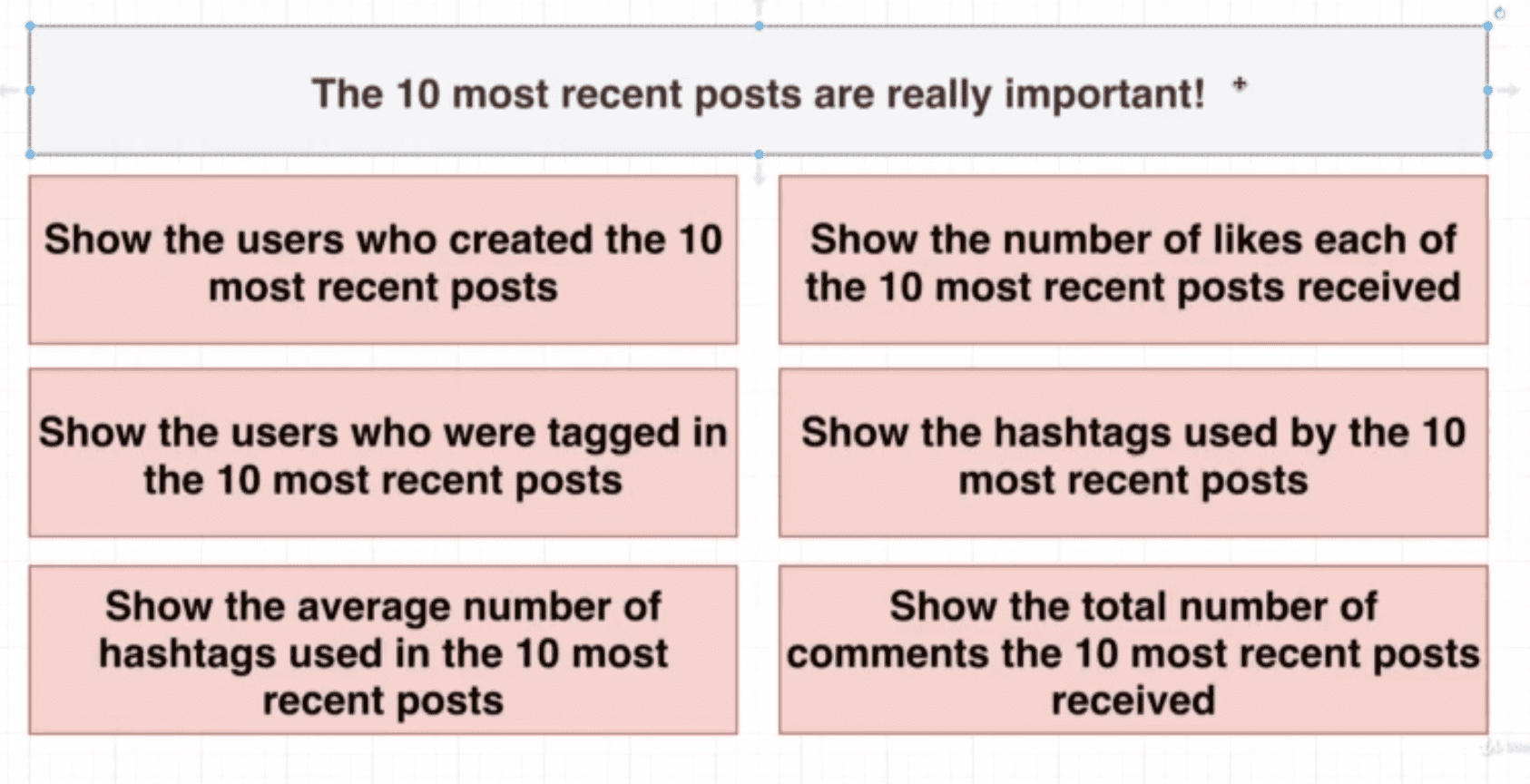 For Each Week, show the number of likes posts, and comments have gotten. Use the created_at of the posts and comments as boundaries to weeks.